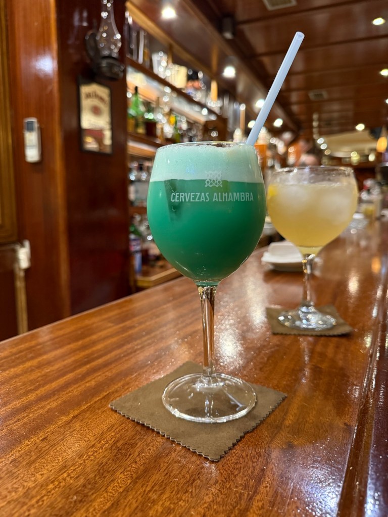 Nito’s Pub, Granada. A pristine seventies-style cocktail bar. The walls are covered with old movie and music posters. 70s soul classics make-up the playlist. Every cocktail on the menu is €7.50. I went for a Blue and a Manhattan. Both great.