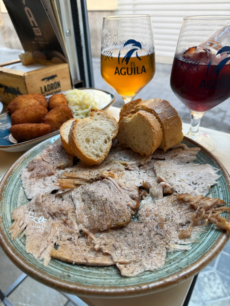 Bar Avila is one of the most popular tapas bars in the city. I recommend coming here as soon as they open for lunch or dinner otherwise you’ll have to wait in line. The star dish is the jamon asado (slow roast pork). It’s crispy on the outside, most in the middle and heavily seasoned. They give you some pretty good free dishes here too.