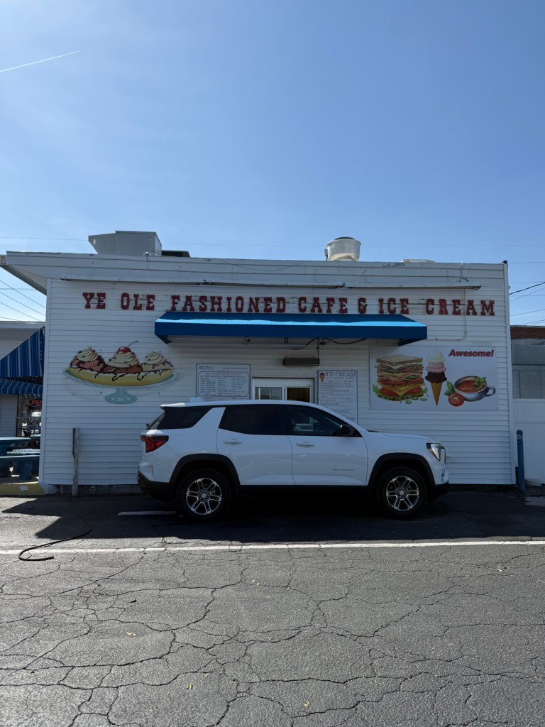 An old school drive-thru ice cream shop. As well as ice cream they also serve burgers and hot dogs. It’s beautiful spot but the food is just ok.
