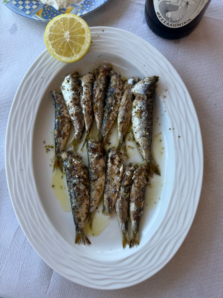 📍Κούτσικος Εστιατόριο (Koutsikos Restaurant) is a road-side restaurant on the way into Loutra. They serve grilled meat and Greek classics. We went for the almyra (monk’s beard in English), lamb chops, zucchini fritters, chickpeas and fried feta in honey. Everything was good expect the fried feta which had slightly too thick a pastry which had gone a little spongey. I really wanted the slow-cooked goat in tomato sauce or lemon sauce but they had run-out (maybe this is more of a lunch spot.