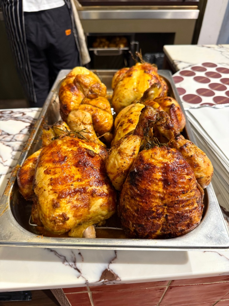 📍Hampstead. Harley’s is a butchers and deli in Hampstead from the same people behind London’s hottest steak restaurant, Ibai, so as well as rotisserie chicken they also sell some pretty amazing looking steaks. They have an impressive looking rotisserie which I had not seen before. For chickens they use a large 1.8kg Galician chicken. It’s £25 for a whole bird. There are a couple of tables outside and they have some wooden cutler but this is more of a takeaway spot. The chicken is seasoned with the espelette which is common on the Ibai menu. It’s a delicious chicken and by far the moistest ont he list. I also recommend getting the chicken fat potatoes too. On top of that they also serve a delicous, creamy, Basque cheese cake. Watch the reel here.